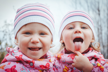 Portrait of a cute little girl of twins