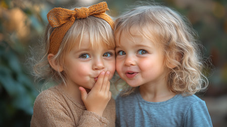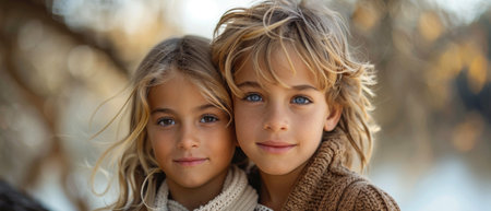 Captivating sibling portrait: natural light highlights innocence and curiosity.
