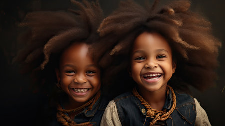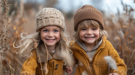An AI-generated illustration of A couple of happy children outside
