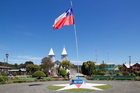 Traditional wodden church at the Chacao village in the Chiloe island, Chile