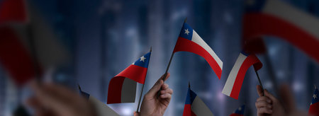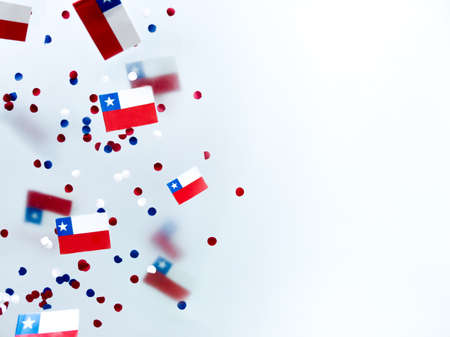 Chile, September 18. Happy Independence Day. National holiday people, victory war for freedom. concept of patriotism and memory. Flags on a foggy background