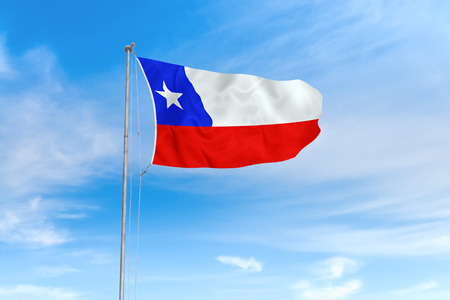 Chile national flag fluttering in the wind on a sunny day. The Chilean flag is red and white with a blue square and white 5-pointed star on the white band. 3d illustration render.