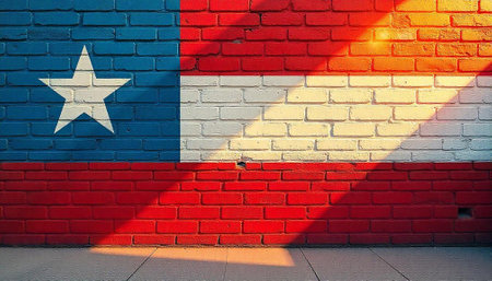 Flag of Chile on concrete backdrop. Chilean flag background with copy space