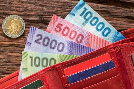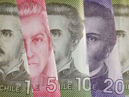 Chilean money, hand-to-hand banknote file, economic and business concept