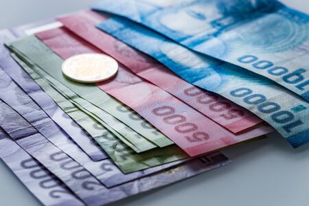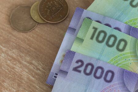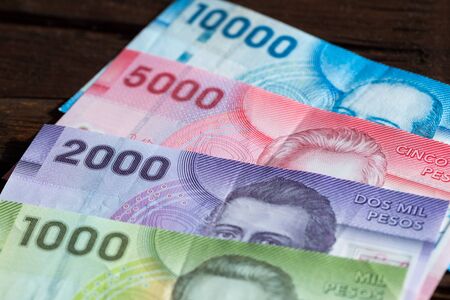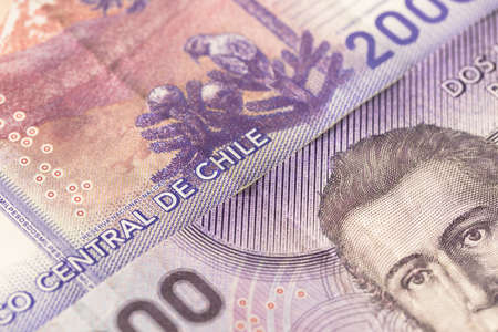 Chile currency. Chilean peso money notes (CLP) in close-up.