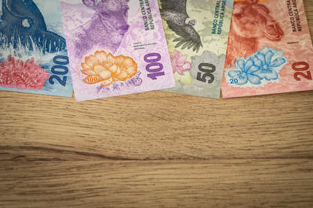 Argentinian currency, Peso, Various paper banknotes, New currency, Place for text