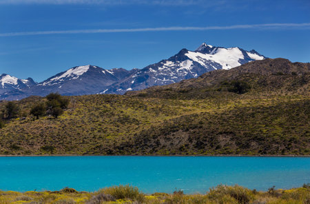 Beautiful Patagonia landscape of Andes mountain range and lakes.