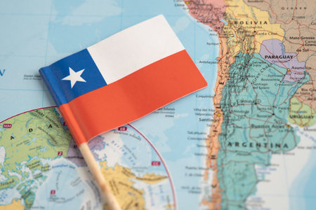 Bangkok, Thailand December 7, 2023, Chile flag on world map.