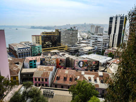 Valparaiso, Chile - 30 Dec 2019: Panoramic view of the center of Valparaiso, Pacific coast, Chile