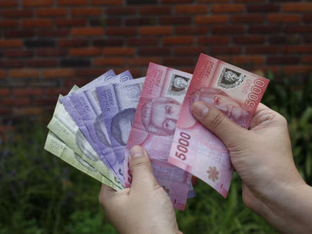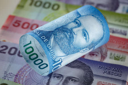 Chilean money, hand-to-hand banknote file, economic and business concept