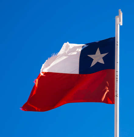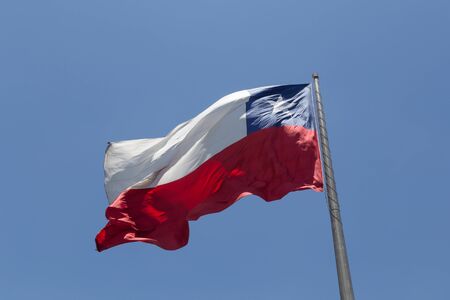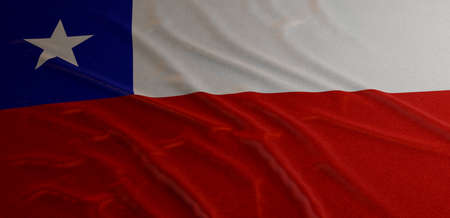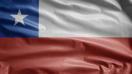 Chilean flag waving in the wind. Close up of Chile banner blowing, soft and smooth silk. Cloth fabric texture ensign background. Use it for national day and country occasions concept.