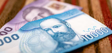Chile currency. Chilean peso money notes (CLP) in close-up.