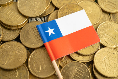 Chile flag on coin and banknote money, finance trading investment business currency.