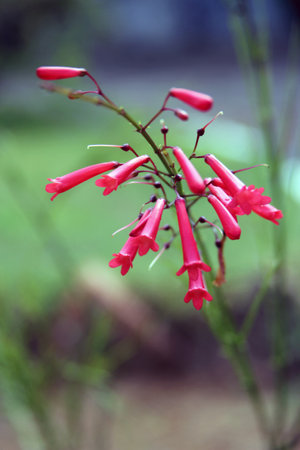 Mostly blurred closeup of Crimson cestrum or Cestrum elegans