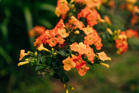 Venous Pyrostegy. Orange Trumpet blooming in garden.