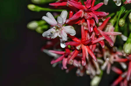 Quisqualis Indica flowers in the bud state are white and then in full bloom have light pink and dark pink colors.