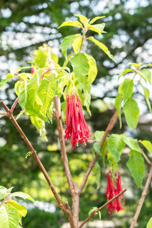 Zurich, Switzerland, July 14, 2023 Fuchsia Fulgens plant at the botanical garden