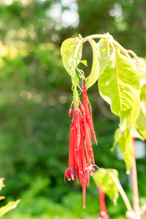 Saint Gallen, Switzerland, June 7, 2024 Fuchsia Boliviana plant at the botanical garden