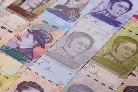 Chile currency. Chilean peso money notes (CLP) in close-up.