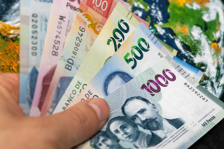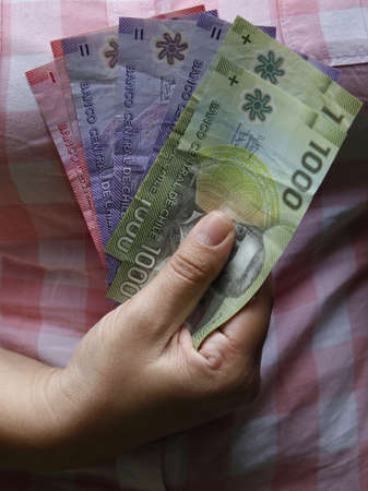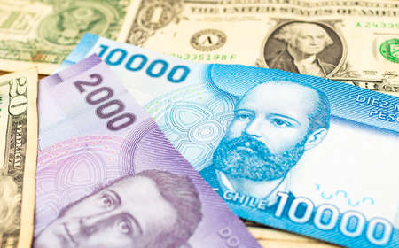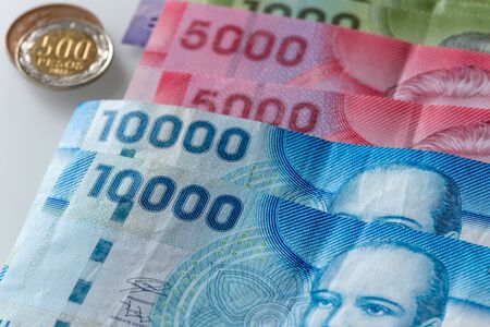 Chilean money, hand-to-hand banknote file, economic and business concept