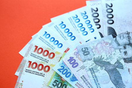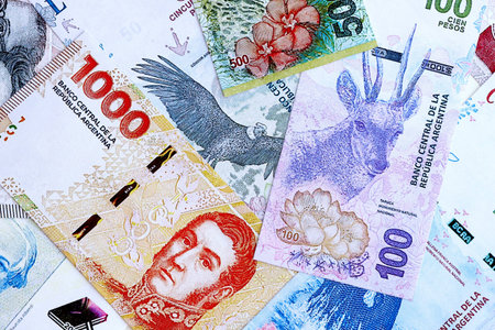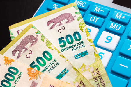 Argentina paper money, peso banknotes as currency for exchange or travel. Argentina money as a business background