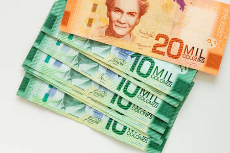 Costa Rica money. Money counting machine with Costa Rican colones. Business concept. counting banknotes, financial operations, money exchange, money loan
