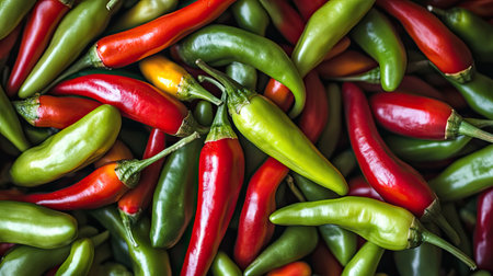 Fresh Chili peppers top view background. Spice mexico. Generate Ai