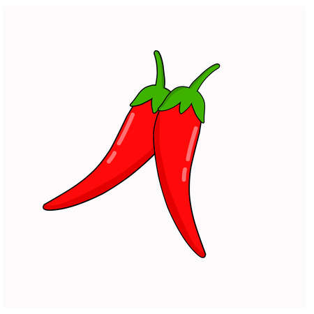 Chilli pepper isolated on white background. Vector illustration in cartoon style.