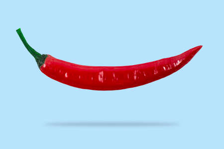 Chili pepper flying on blue background isolated with shadow