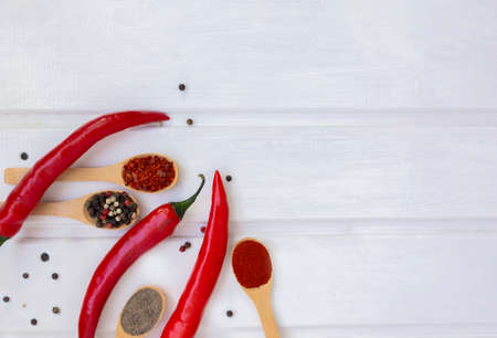 Hot spices, chili pepper aromatic ingredients on a white background, vitamins for the body