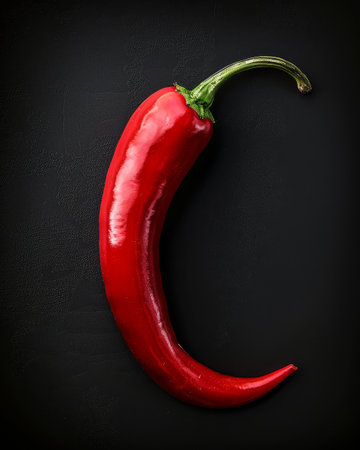 Fresh red hot chili pepper on deep green background, minimalistic style, vegetable art, top view