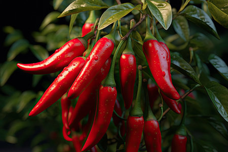 Vibrant red chili peppers, showcasing their fiery color and intense heat, perfect for adding spice and flavor to culinary creations