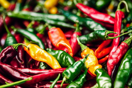 Creative chilli pepper background for posters, blogs, web design. Healthy food ingredient suitable for vegans and vegetarians