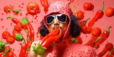 Creative chilli pepper background for posters, blogs, web design. Healthy food ingredient suitable for vegans and vegetarians