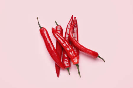 Red hot chili peppers arranging with white background and blank space. Garnish and food ingredients.