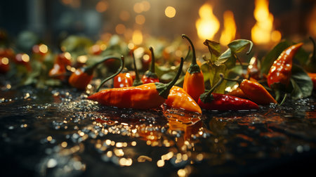 hot red peppers and hot fire.generative ai