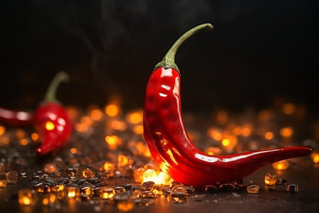 Fiery red chili pepper with rising steam against a warm backdrop