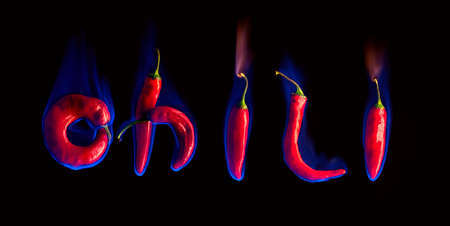 Burning chili on black background