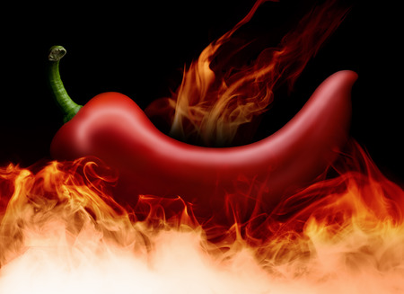 Flaming red hot chili pepper on a black background