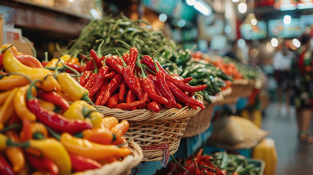 a colorful mix of the freshest and hottest chili peppers. Market place