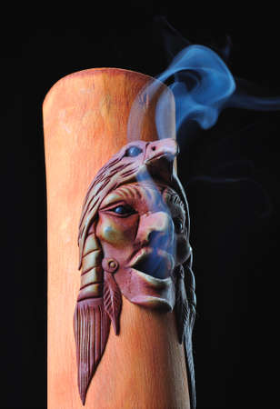 Ecuadorian incense holder traditional of the region, with Incan features, with smoke coming out of the figures mouth.