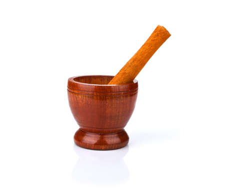 The vintage bronze mortar and pestle isolated on a white background with free space for text