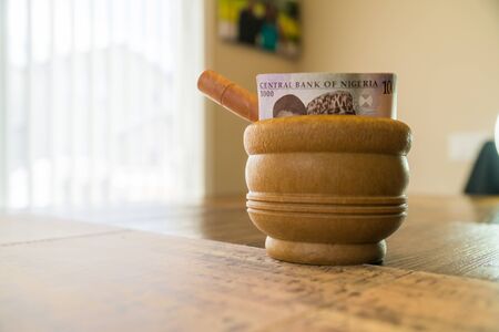 black stone mortar stained vintage design basis wooden closeup alchemy