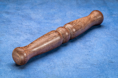 Wooden Tai Chi ruler, a traditional Chinese exercise tool, rests on textured paper, symbolizing tranquility and balance. Perfect for wellness and mindfulness themes.