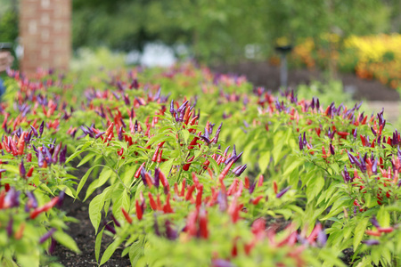 Colorful Ornamental Peppers Growing in Garden