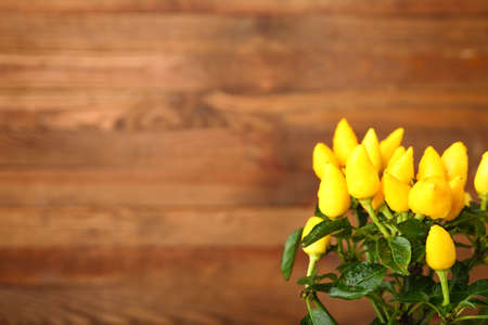 Pepper tree on wooden background, closeup