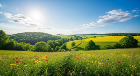 Picturesque wildflower meadow under a bright sunny sky