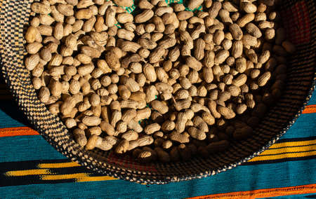 Crate of organic peanuts still in a shell and sold at a farmers market