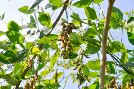 top view of Pile of ripe Tamarind fruits.Sweet ripe tamarinds.