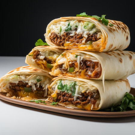 A flavorful beef burrito wrapped neatly, showcasing the rich Mexican culinary tradition.